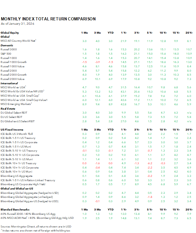January 2026 Monthly Index Returns